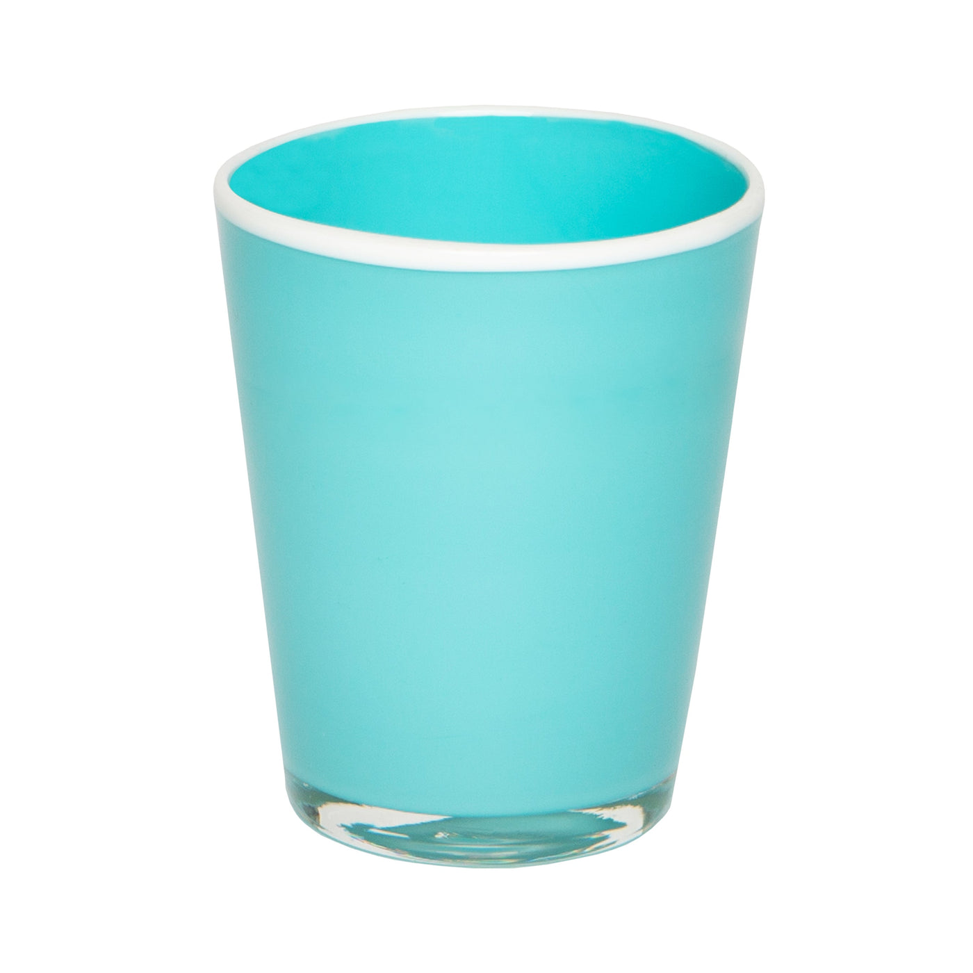 Each tumbler is lightly frosted, resembling sea glass and features a contrasting colored rim. Serve up a little summer with this artfully designed glassware selection.