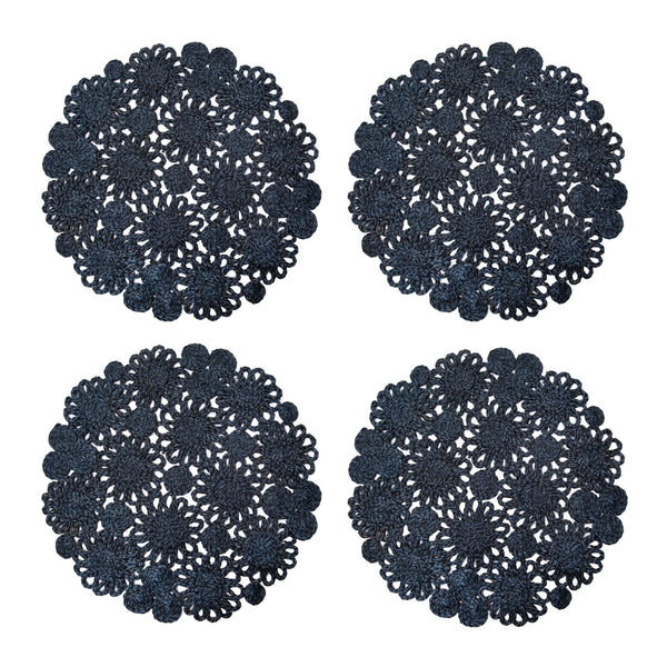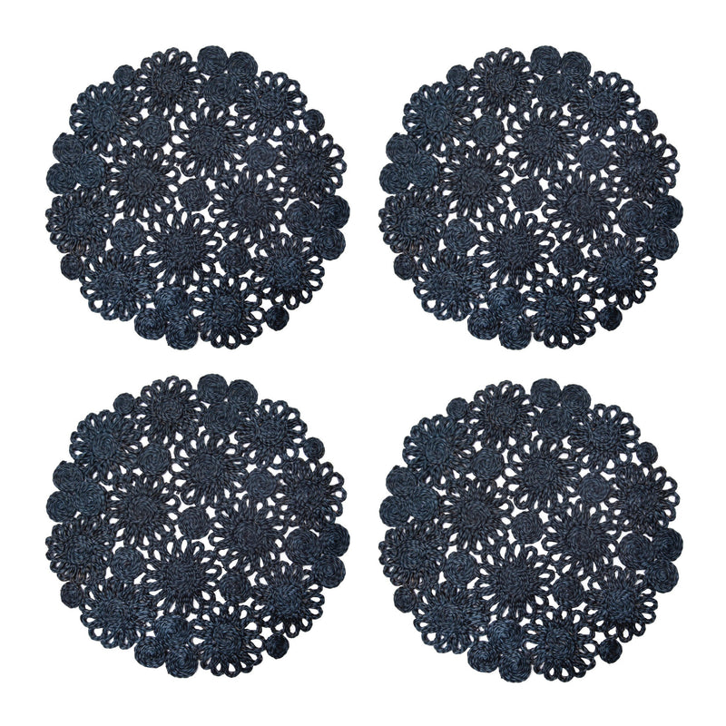 Daisy Jute Navy Placemat 15" Round - Set of 4
