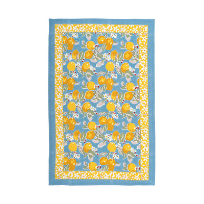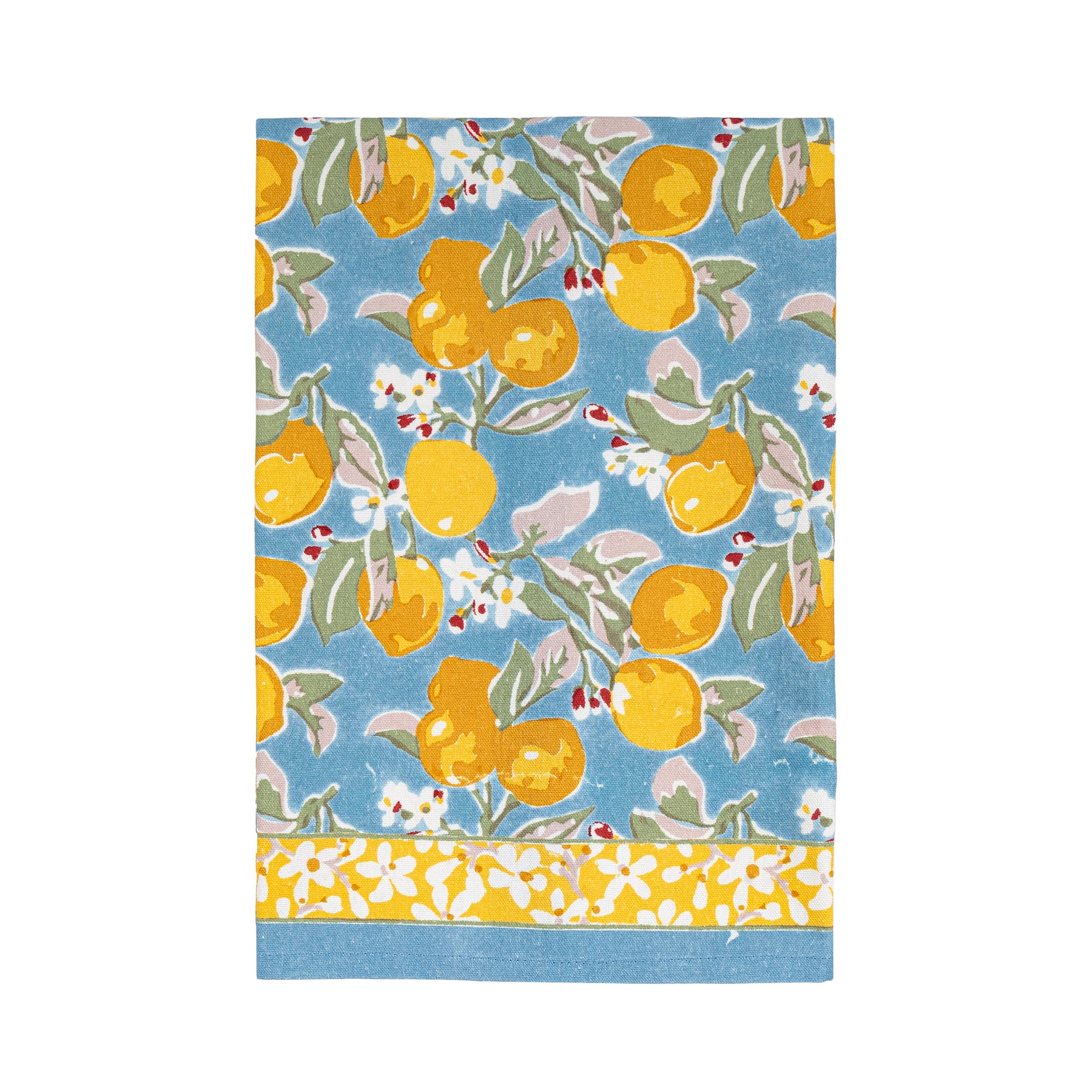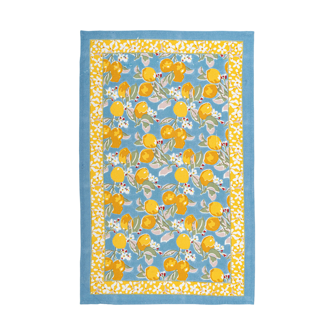 Evoking the sun-kissed beauty of citrus groves, the Citron Bleu & Yellow collection features radiant lemon blossoms woven among lush foliage on a serene, rich blue inspired by the Mediterranean. Our finely crafted French tea towels can perk up a kitchen towel rack, line a bread or picnic basket, or nestle the arm of a pitcher of your favorite beverage. Set of 3 matching tea towels, each measuring a generous 20 x 30 inches Designed exclusively for Couleur Nature by Parisian artist Bruno Lamy 100% cotton; machine washable and colorfast Easily cared for and suitable for everyday use All our handmade French linens naturally feature slight variations, making each one a unique work of art .