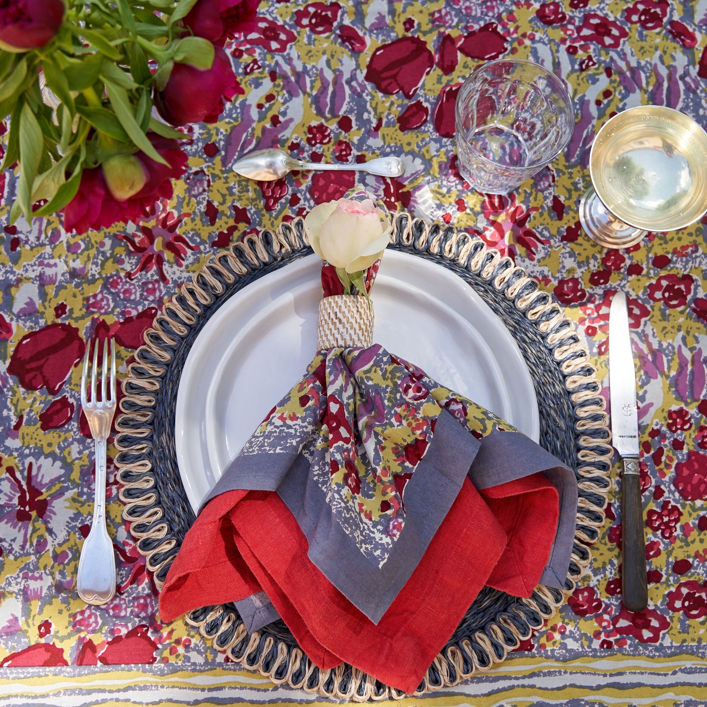 Jardin Napkins Red & Grey, Set of 6