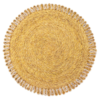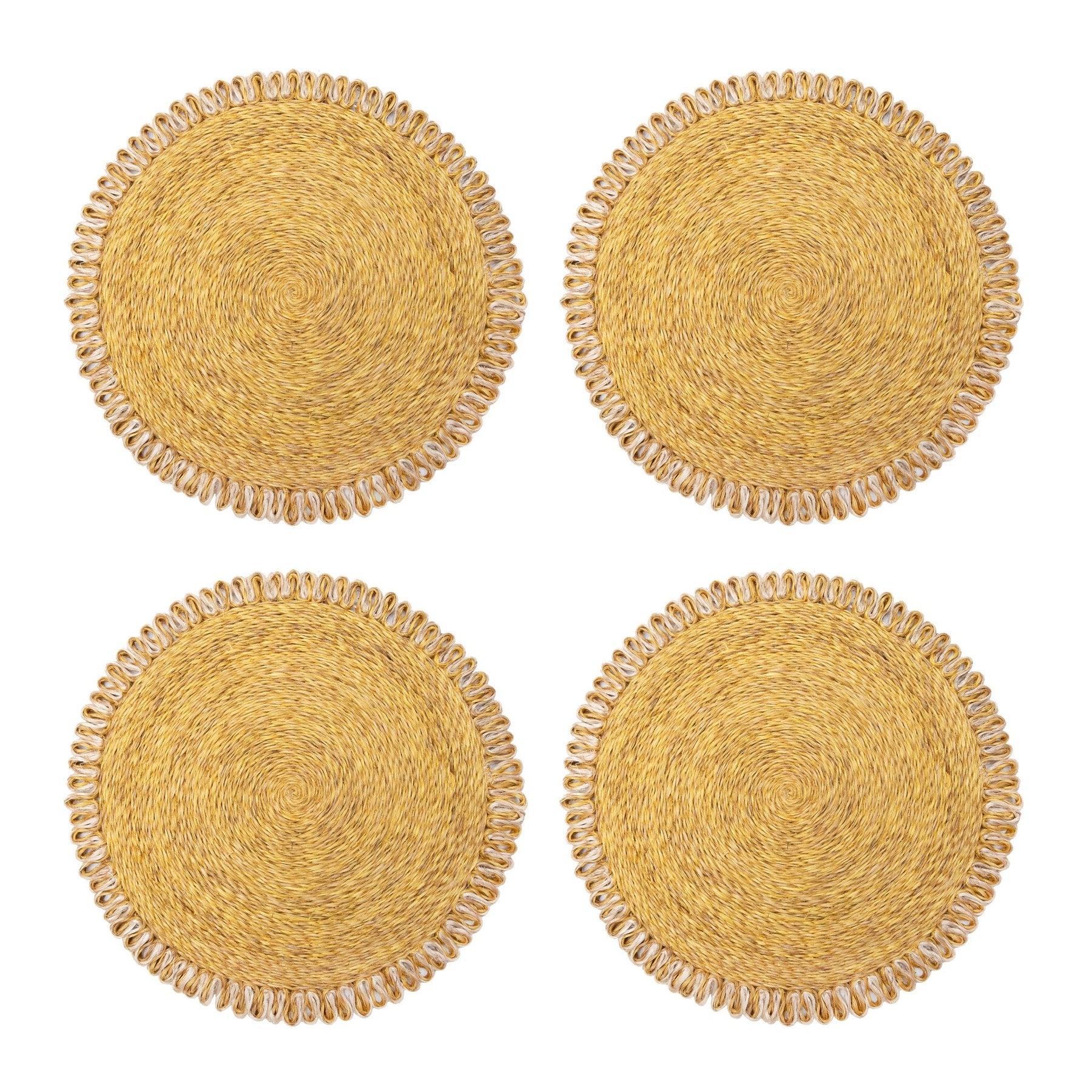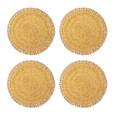 Loopy Abaca Mustard & Natural 15" Round Placemats - Set of 4